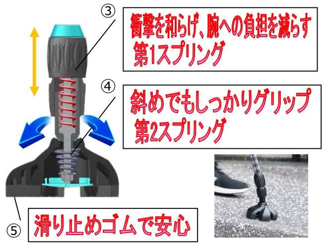 ![]() 2つのスプリングで快適なつき心地に加え、滑り止めゴムチップで安心! |